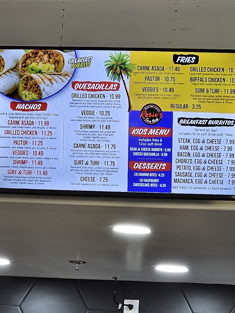 With generous portions and options to customize, Rosie’s encourages visitors to savor each order in a setting that feels friendly and welcoming without pressure. Whether you’re stopping in to try a variety of tacos or settling in for a filling burrito, the menu supports relaxed, everyday enjoyment.